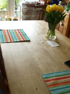 Not a lot going on today as I'm meeting a friend for coffee later and then I'm working so I can't make a mess! At the front is a card I made a while ago using Stampin' Up perfect postage punch, K&Co self adhesive papers and three buttons. Very simple but quite sweet I think. In the middle are three bags which I've recently made. On Friday I did a sewing workshop at The Eternal Maker and learnt how to make a lined, zipped bag. The one at the front is the one I completed there. I came away with the template and whilst the method was fresh in my head I wanted to make another so on Sunday I made the one on the right. Of course I couldn't remember how to do the zip part so I frantically googled and came across a lovely blog which helped immensely. Especially as I was a little fraught trying to cook slow roast pork, make a 3D model of a sperm cell and help my other son get his cookery, sorry food tech, ingredients ready. I made the red one on Monday and now all I have to do is decide which bag I'm sending to my 'cyber' friend for her birthday.