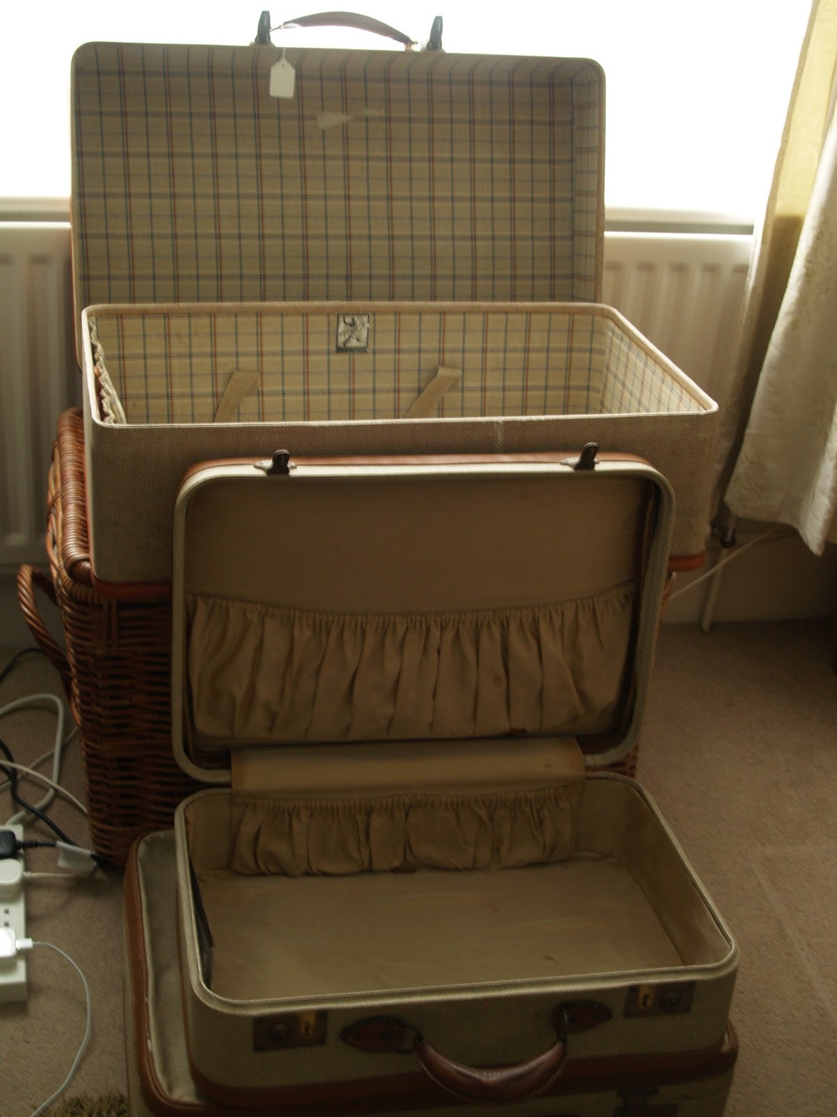 I am doing a village fair in June in a rather well to do area of Surrey so I'm looking for some interesting bits and bobs to put on my stall. I noticed the suitcases in a local junk shop so popped out to see how much they were. Some while later I returned to the house lighter of purse but full of ideas! I have just looked on Ebay to research the largest suitcase and it looks really interesting. The other two are a little shabby inside so I plan on tarting them up using this tutorial